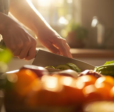 Cozinhar com intenção e presença transforma uma necessidade diária em um ritual de autocuidado. Cada refeição preparada com atenção plena é um presente para seu corpo e sua mente.